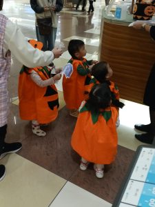 お菓子をくれて、みんな大事そうに自分の持っていたハロウィンバッグに入れていました❣️
