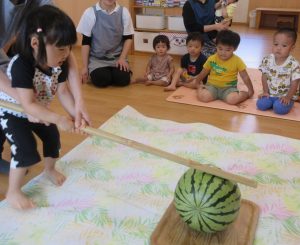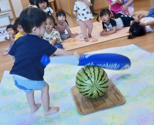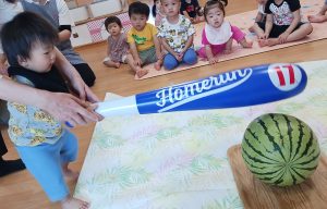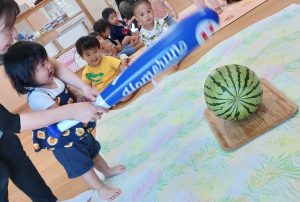 大王製紙株式会社 GOO.Nすくすくはうすブログ 2025.07.28 スイカ割り🍉 パート2 みんなでスイカ割りをしました♪ 割れた瞬間スイカのいい香りが☺️ 甘くておいしかったね😋 過去のブログ 2025.07.28🦗虫の声を聴く会🪰🎶 2025.07.28お祭りごっこ 2025.07.28避難訓練🚒🚑 2025.07.28室内あそび 2025.07.28クワガタ 2025.07.28スイカ割り🍉 パート2 2025.07.28スイカ割り🍉 パート1 2025.07.28セミ 2025.07.28大きくなりました🍉 2025.07.28七夕飾り🎋