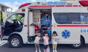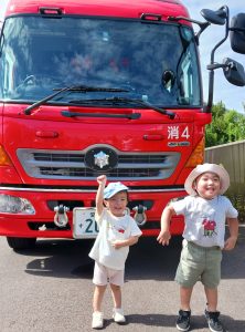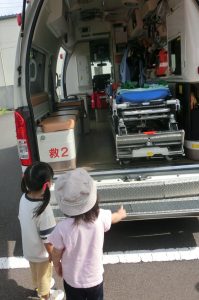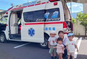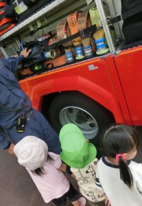 お子さまたちは消防車と救急車を見せてもらいました🚒