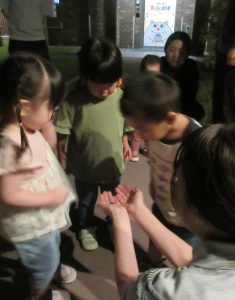 外では虫の声に耳を傾け昼間とは違う雰囲気の園庭を楽しみました😊