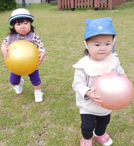 大きなボールを持って歩いたり、追いかけたりして楽しみました😊