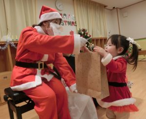 待ちに待ったサンタさんの登場には、泣いてしまった可愛いお子さまもいましたが、プレゼントはみんな大喜びでした💖