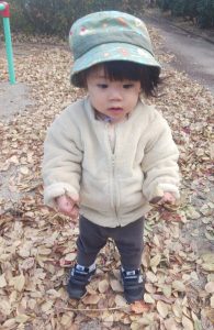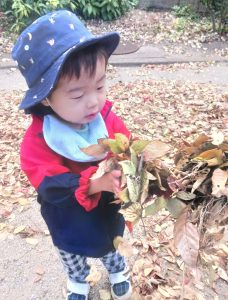 落ち葉の感触を楽しんでいました!