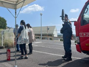 スタッフも消防隊の方に消火器の使い方を指導していただきました。