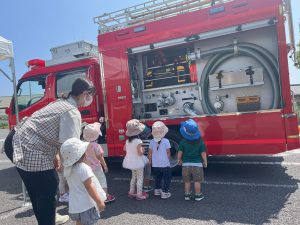 消防車の見学もさせてもらい、真剣に観察するお子さまたちでした😲✨