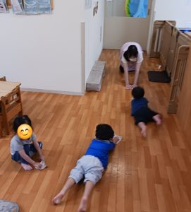 お掃除が好きなお子様がいらっしゃるので、大きい子さんたちはみんなでお掃除ごっこをしました!