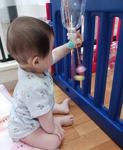 しばらくここに座ってぽんぽんを観察してみたり、口に運んでみたり‥夢中になって遊んでいました!