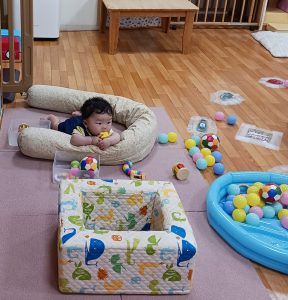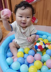 ボールプールに入ってあそんだよ!ピンクのボールGETしたよ~✨