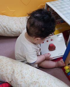 しばらくここに座ってぽんぽんを観察してみたり、口に運んでみたり‥夢中になって遊んでいました!