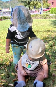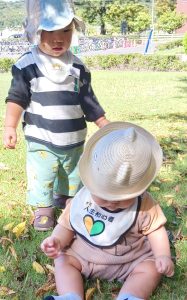 また落ちてたよ~と帽子を拾って、もう一人のお友だちも被せてくれていました♡