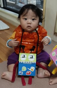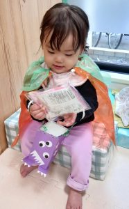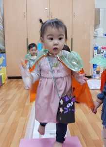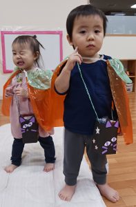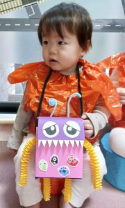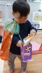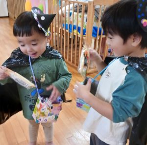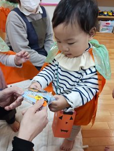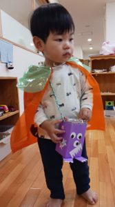 雨が降っていた為、外には出られませんでしたが、お部屋で仮装してお菓子をもらいました(^_^)