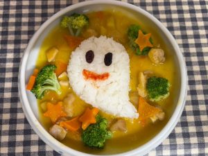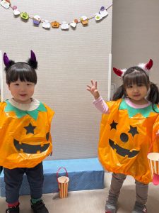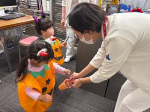 毎年仮装をして商店街を歩くのですが、今日は雨…ということで許可をいただき、カボチャの仮装をして院内を歩きました♩