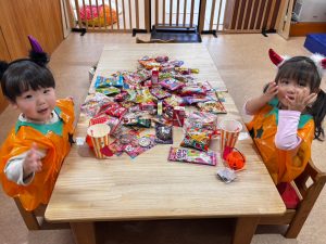 院内の職員の方たちがたくさんお出迎えしてくれ、たくさんお菓子をもらいました!!