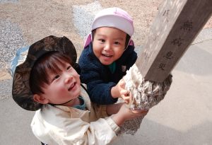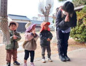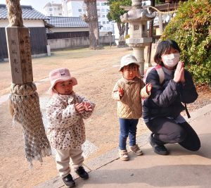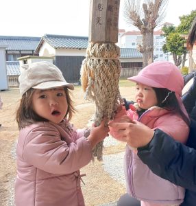 スタッフの真似をして礼、拍手などをしたり鈴を鳴らしたりしてお参りしました。