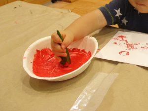 しっかり絵の具をつけて…