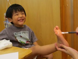 くすぐったさを感じるお子様たちです。
