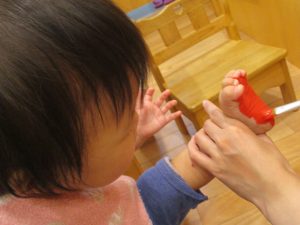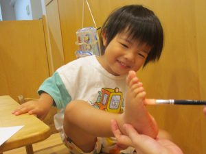 足の裏に絵の具をつけると、