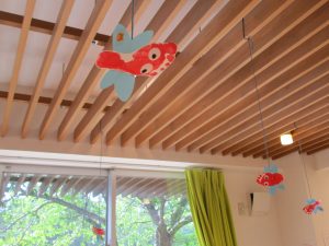 保育園の天井にはお子様たちの足形で作った