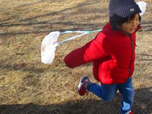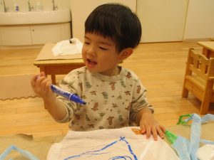 ビニール袋の凧に一人ひとりが好きな色を選んで自由に絵を描き