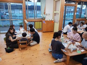 みんなでおにぎり、いもたき、フルーツを食べ、ワイワイとお食事タイムを楽しみました。