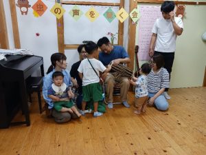 虫の声を聴きながらお散歩に出かけ、公園内では折り紙の虫をGET🦗園に帰ってくると演奏者の方がスタンバイ!何事かと室内に入るのをためらう姿も見られましたが、