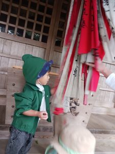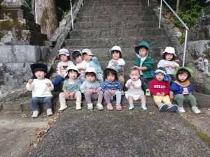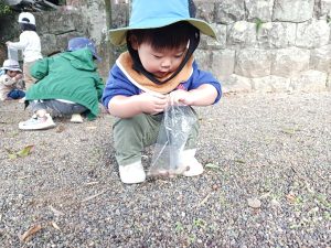 たくさんのどんぐりを拾わせてもらい、袋いっぱいのおみやげができてルンルンのお子さまたち😊