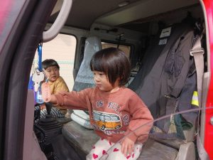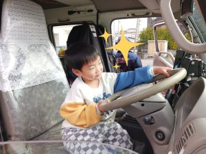 運転席にも座らせてもらい、普段できない体験をさせていただきました。
