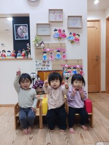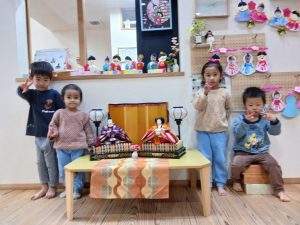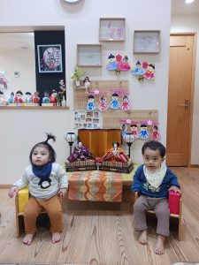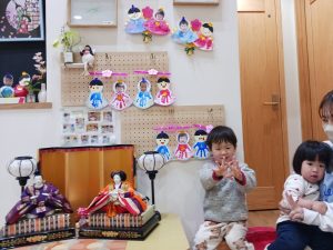ひなまつりの歌を歌ったり、お雛様と一緒に写真を撮ってひなまつりの雰囲気を味わいました✨️