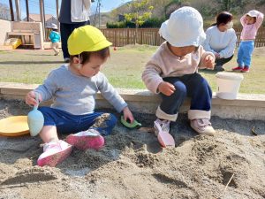 戸外遊びを楽しんでいるお子さまたちです😊