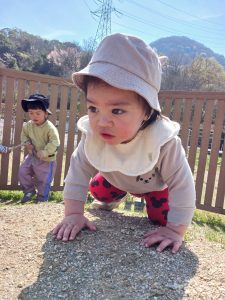 ハイハイで築山を登ったり🎵