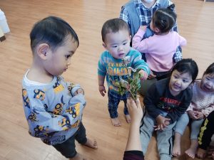 いわしの匂いが苦手なことを伝え、本物のひいらぎいわしを手にして