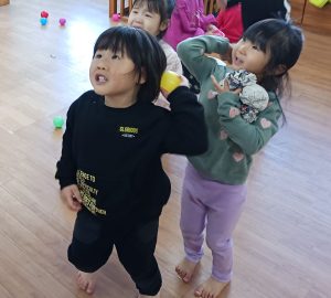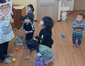 鬼が現れると、どきどきしながらも年上の子どもたちは「おにはーそと!」と、