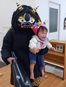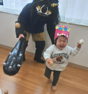 みんなで豆まきの歌をうたったり、節分の絵本を見たりして楽しみました!